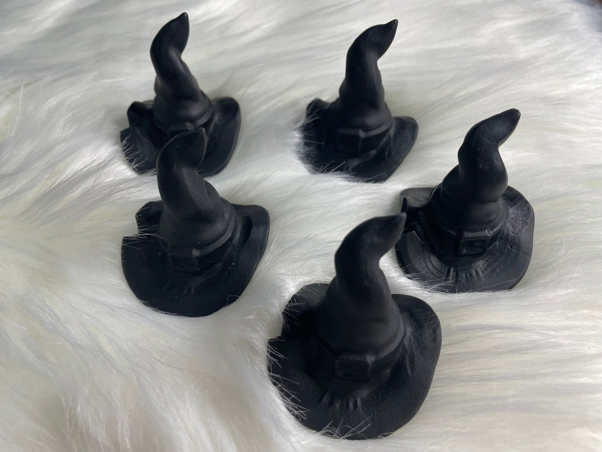 Black Obsidian Witch Hat - 2 inch Black Matte Crystal Carvings